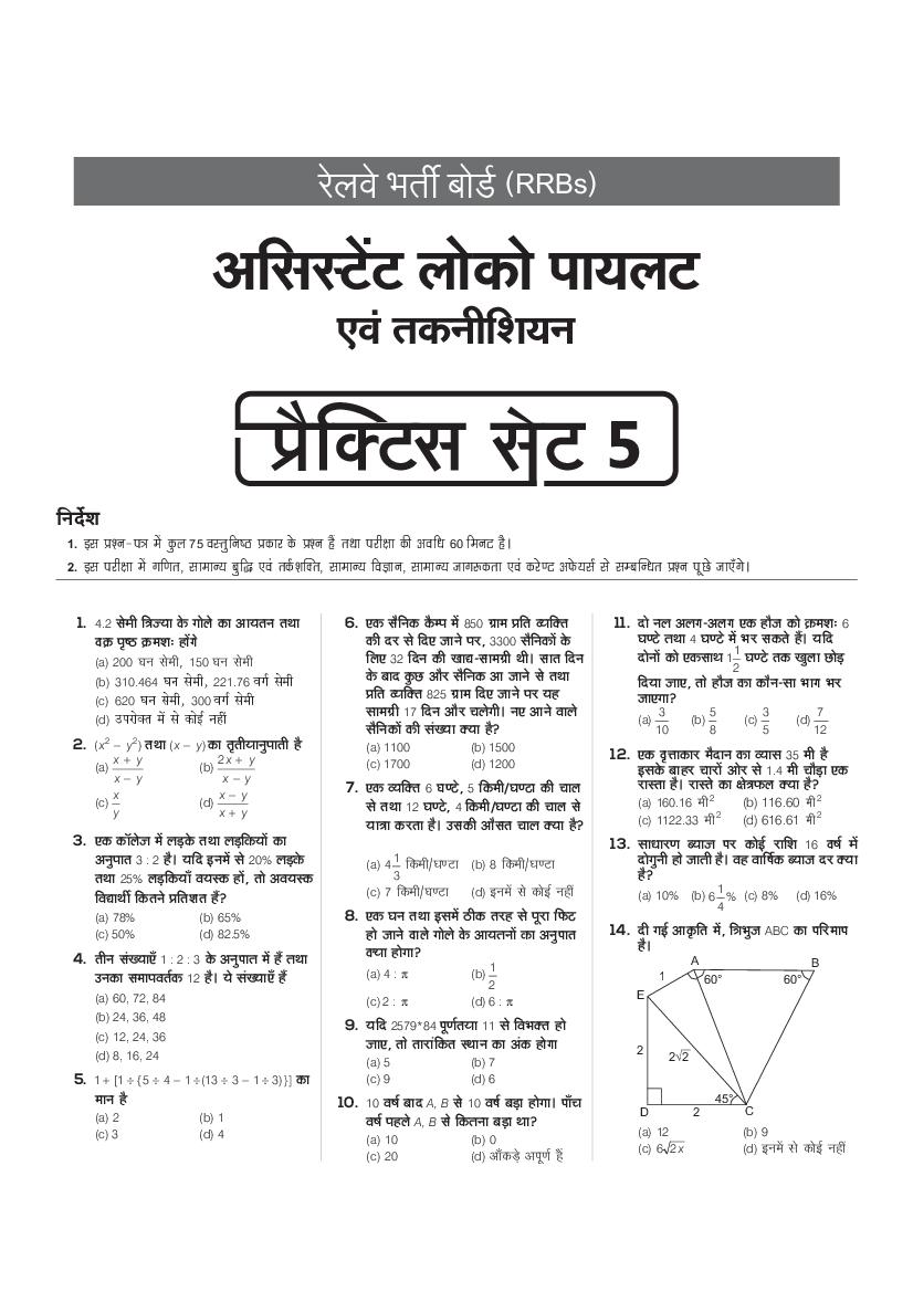 RRB ALP Model Paper 2024 in Hindi - Set 5 View Download