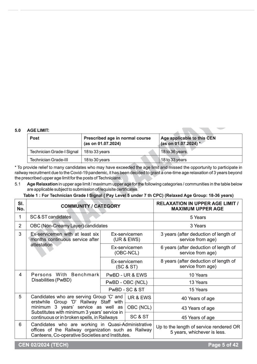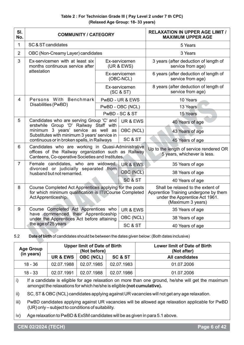 Check out the RRB Technician Age conditions is as specified below.