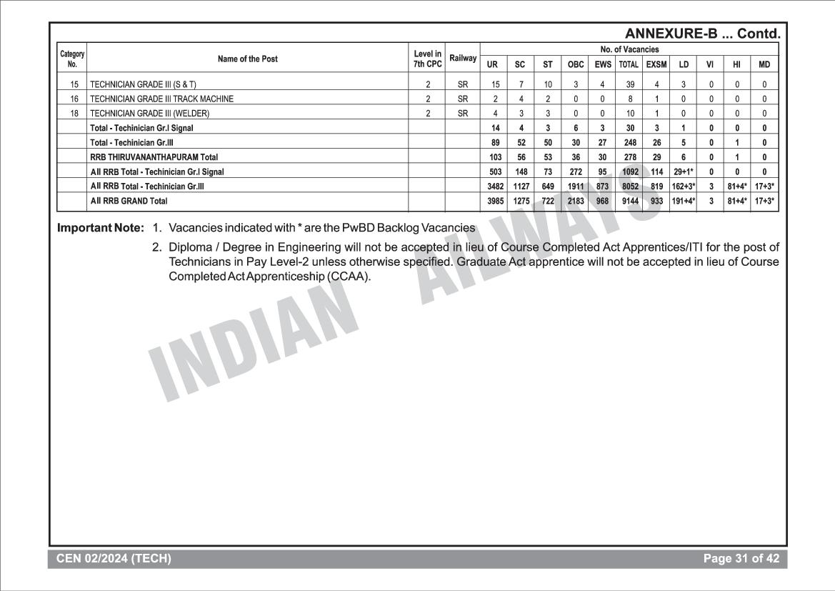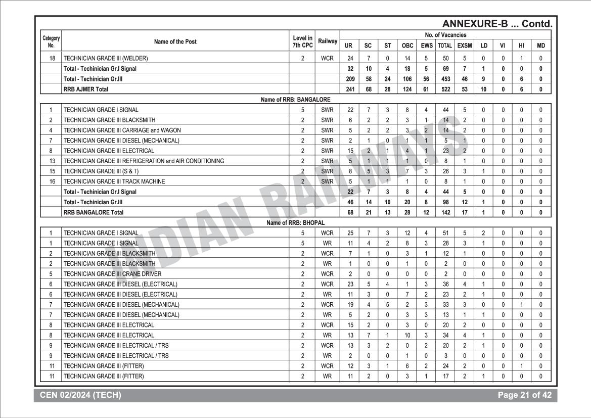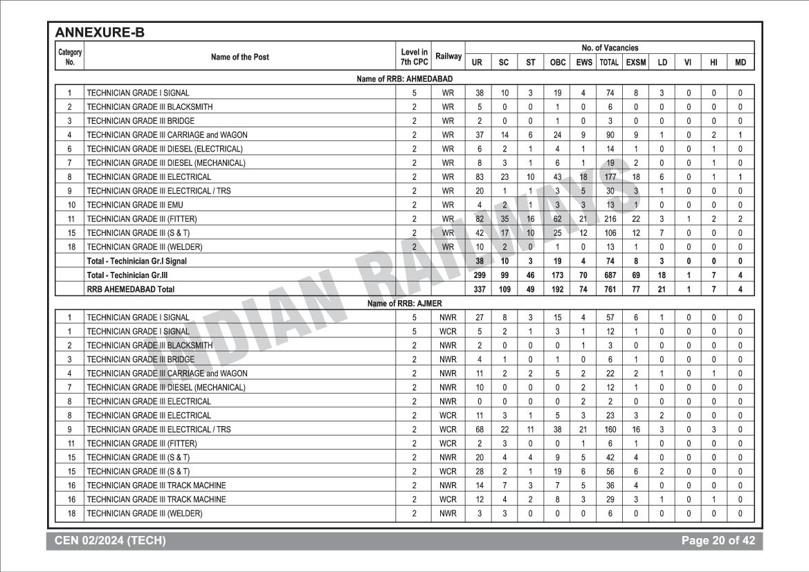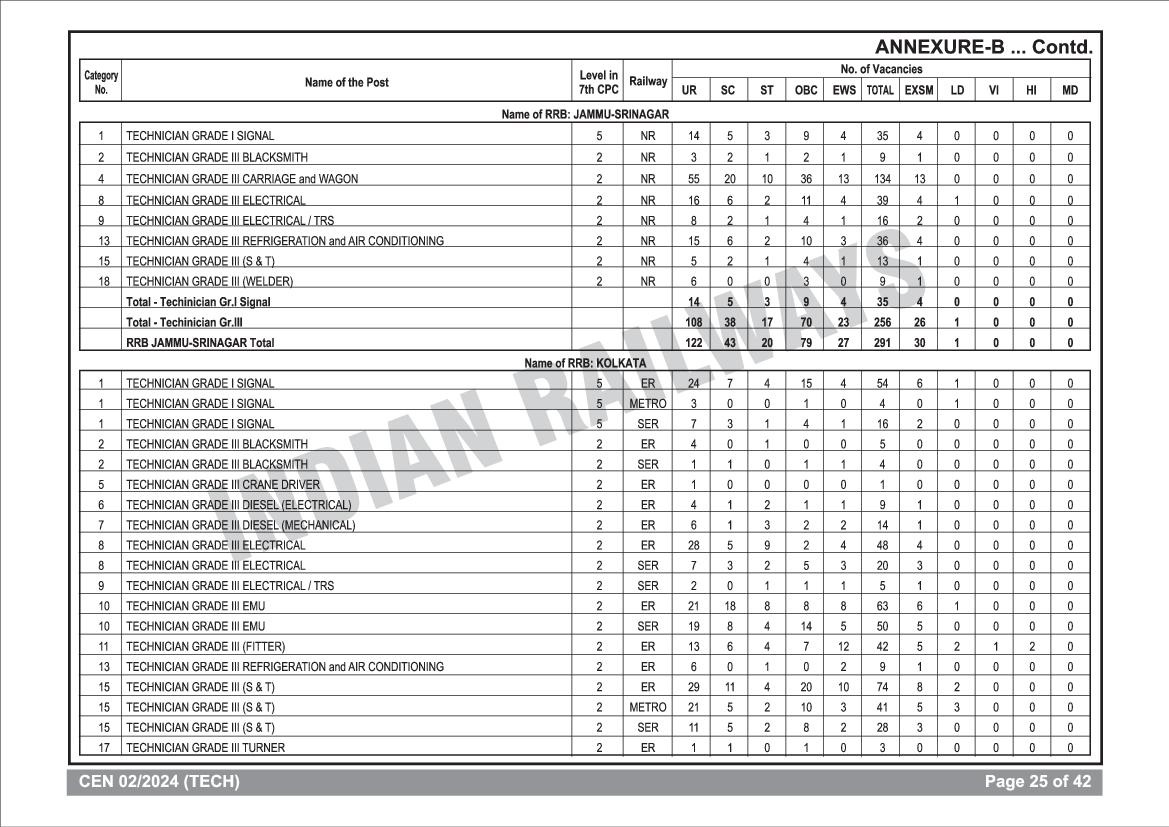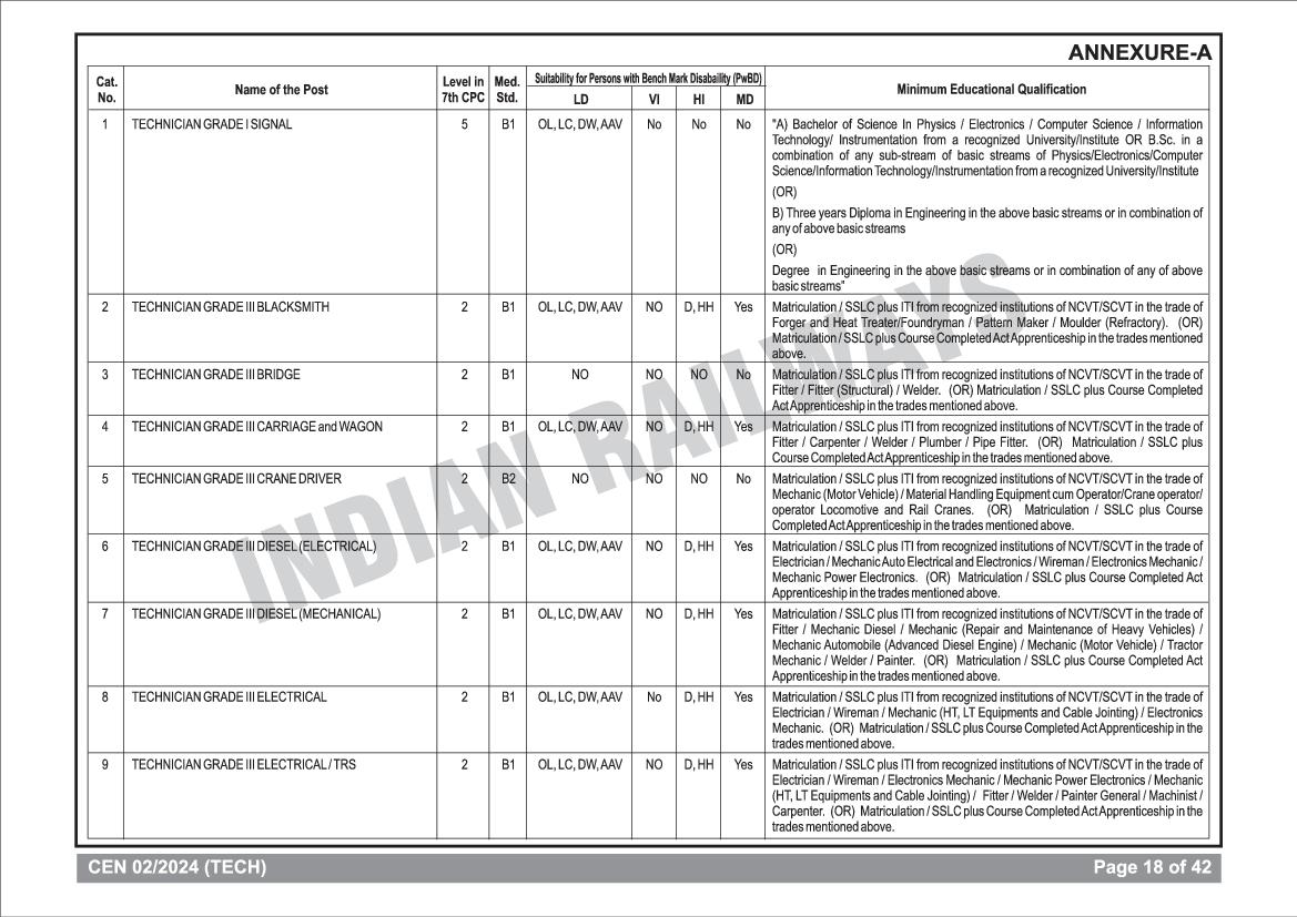 RRB Technician Educational Qualification Criteria View Download
