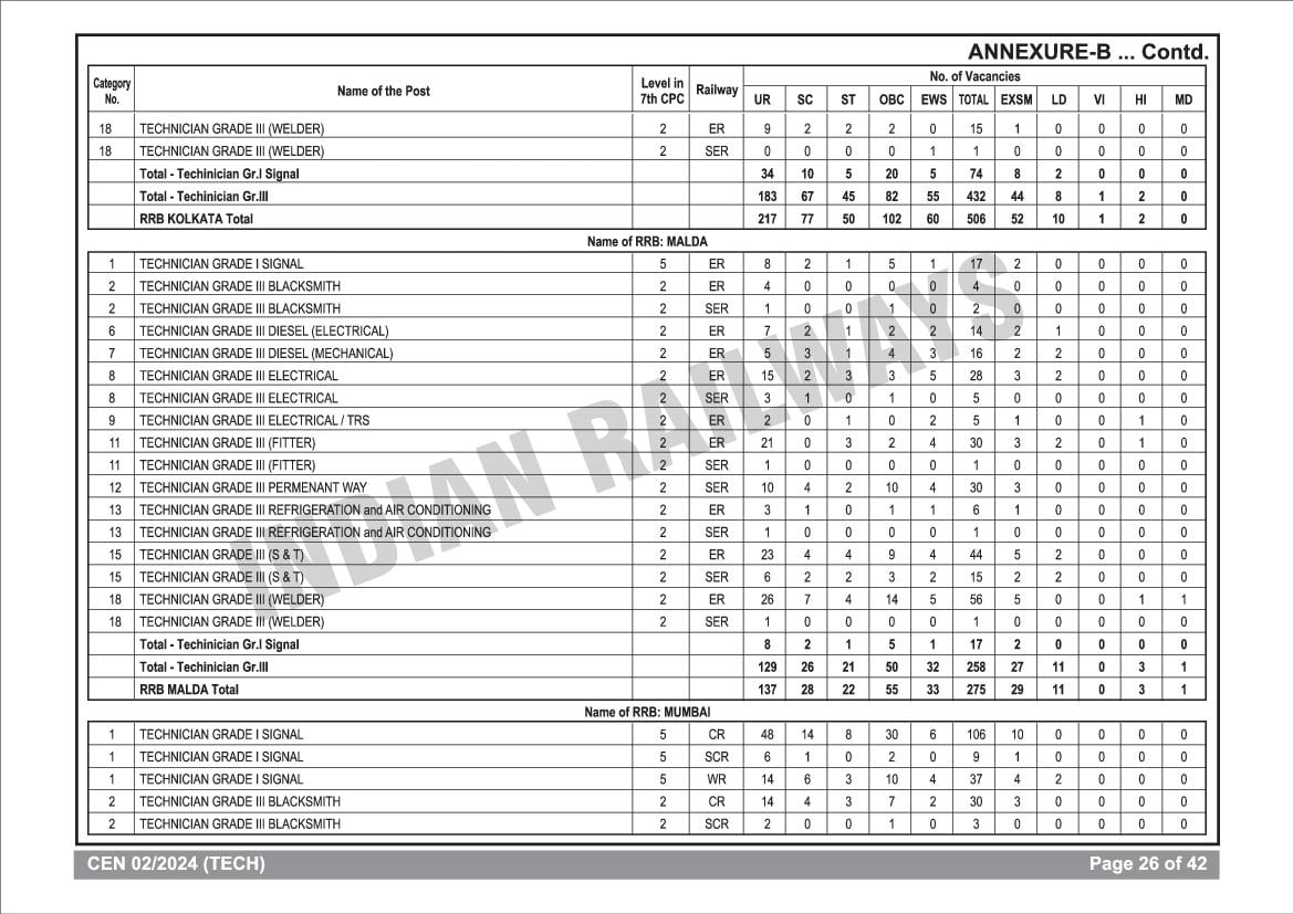 RRB Technician Age Criteria